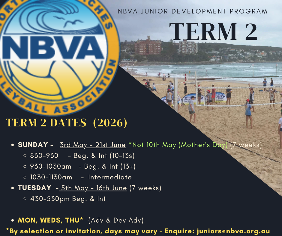 We are excited to offer a 7-week Junior Beach League in Term 2! The league is aimed at U14/U15/U16 ages and teams may be mixed age group and mixed gender.